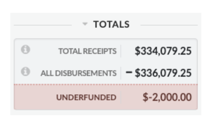 If there is an excess of funds this section will show a red bar with the word “Overage.”